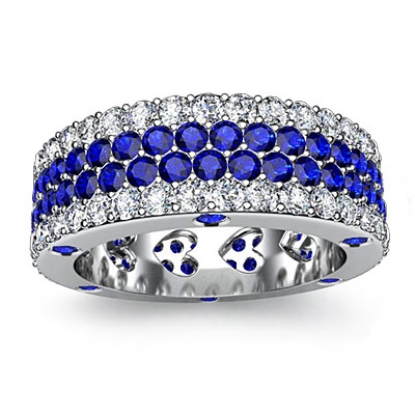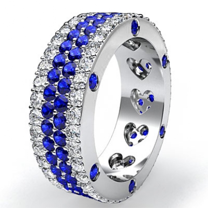 Women's Round Sapphire Diamond Band Heart Eternity Ring Platinum (1.94Ct. tw.)