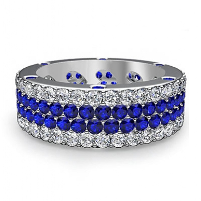 total weight round Sapphire diamond eternity women's Anniversary band in Platinum 950. Hand pave set and round bezel set. (1.94Ct. tw.)