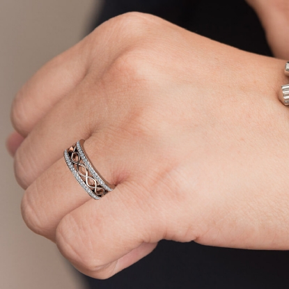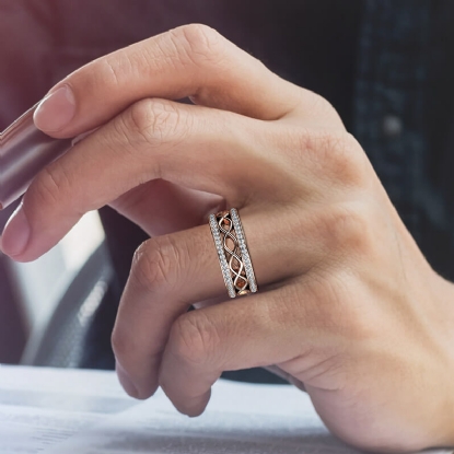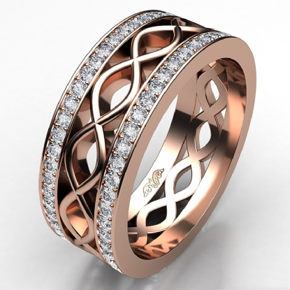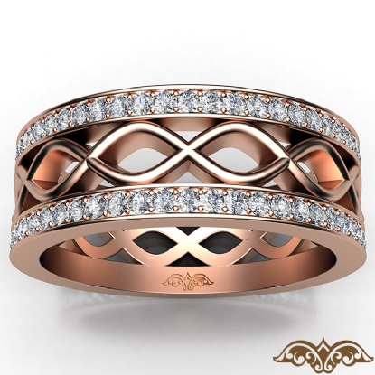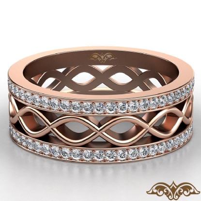 A symbol of everlasting love, infinity center diamond eternity men's wedding band handmade in 18k Rose Gold. Features round diamonds in a micro pave setting on edges with beautiful infinity twist design in a polished finished metal. This wedding band is also available in 14k & 18k white gold, yellow gold, rose gold and platinum 950. If you don't find your desired jewelry, please don?t hesitate to contact our designer to make your custom jewelry design (1Ct. tw.)
