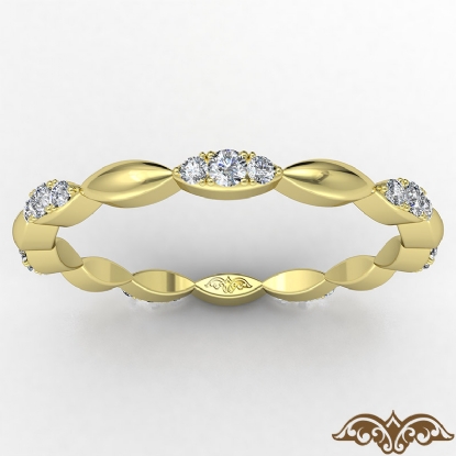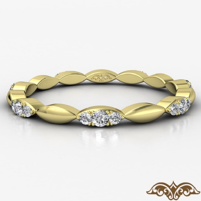 Striking marquise design round diamond eternity women's wedding band crafted in 14k Gold Yellow. Features round diamonds in a micro pave setting with polished finish alternating marquise shape design. Available in 14k & 18k white gold, yellow gold, rose gold and platinum 950.
