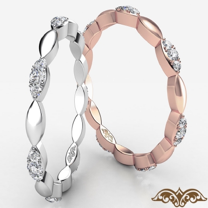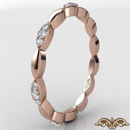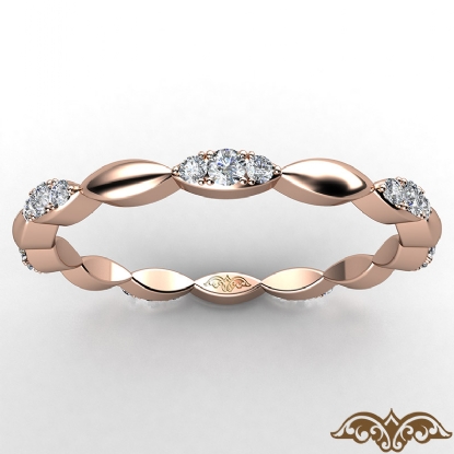 Striking marquise design round diamond eternity women's wedding band crafted in 14k Rose Gold. Features round diamonds in a micro pave setting with polished finish alternating marquise shape design. Available in 14k & 18k white gold, yellow gold, rose gold and platinum 950.