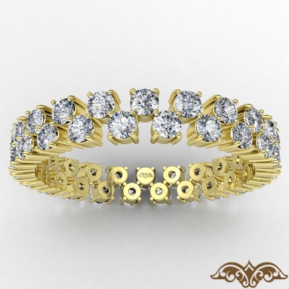 A dazzling two row round diamond eternity women's wedding band made in 14k Gold Yellow. This beautiful ring features two row round diamonds in a prong setting. Available in 14k & 18k white gold, yellow gold, rose gold and platinum 950. If you don't find your desired jewelry, please don?t hesitate to contact our designer to make your custom jewelry design (1.5Ct. tw.)