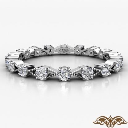 This elegant xo style round diamond eternity women's wedding band crafted in 18k Gold White. Features round diamonds in a prong setting with alternating milgrain design. Available in 14k & 18k white gold, yellow gold, rose gold and platinum 950. If you don't find your desired jewelry, please don't hesitate to contact our designer to make your custom jewelry design (0.55Ct. tw.)