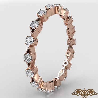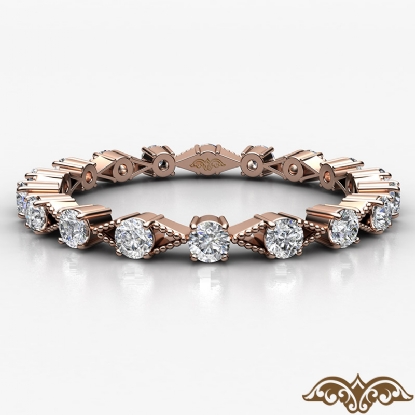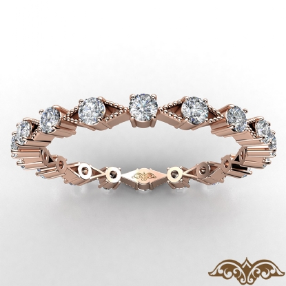 This elegant xo style round diamond eternity women's wedding band crafted in 14k Rose Gold. Features round diamonds in a prong setting with alternating milgrain design. Available in 14k & 18k white gold, yellow gold, rose gold and platinum 950. If you don't find your desired jewelry, please don't hesitate to contact our designer to make your custom jewelry design (0.55Ct. tw.)