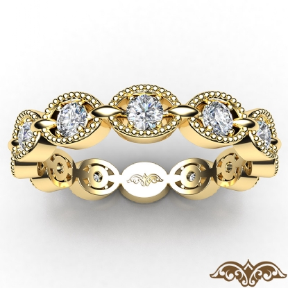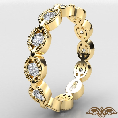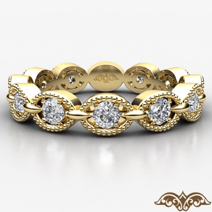 A sparkling milgrain round diamond link eternity women's wedding band designed in 18k Gold Yellow. Features round diamonds in a prong setting with milgrain edges, this elegant promise ring is a symbol of pure love. Available in 14k & 18k white gold, yellow gold, rose gold and platinum 950. If you don't find your desired jewelry, please don't hesitate to contact our designer to make your custom jewelry design (0.4Ct. tw.)
