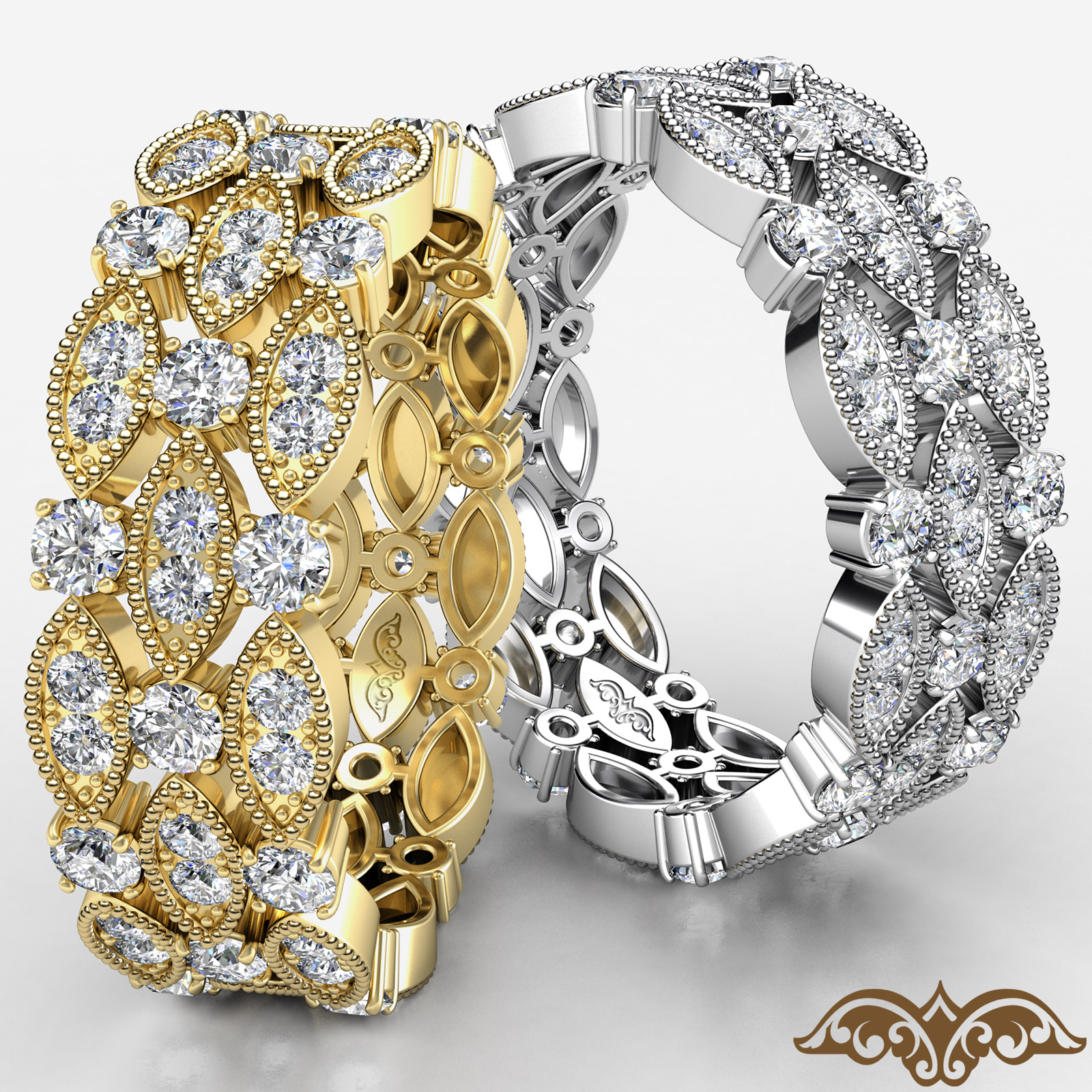 3 Row Milgrain Round Diamond Eternity Women's Wedding Band 14k Gold (1.1Ct. tw.)