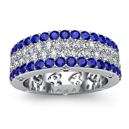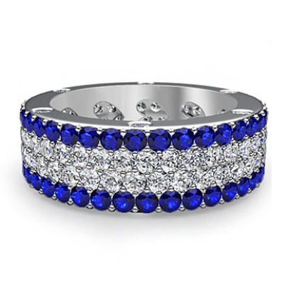Women's Wedding Ring Eternity Round Sapphire Diamond Band Platinum (2.3Ct. tw.)