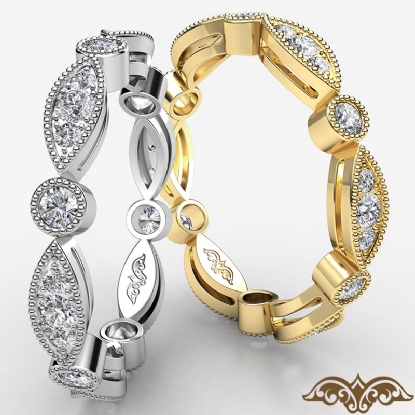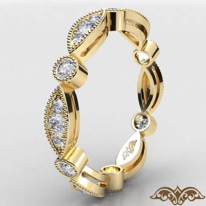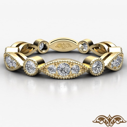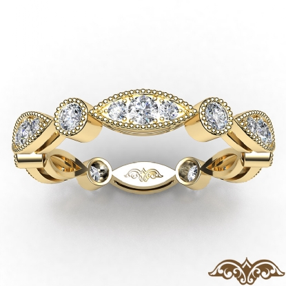 Vintage inspired milgrain marquise and dot round diamond eternity women's wedding band made in 18k Gold Yellow. Features round diamonds in a micro pave setting on marquise and dot design with milgrain detailing. Available in 14k & 18k white gold, yellow gold, rose gold and platinum 950. If you don't find your desired jewelry, please don't hesitate to contact our designer to make your custom jewelry design. (0.45Ct. tw.)