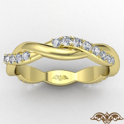 Beautiful and delicate twisted infinity round diamond eternity women's wedding band made in 14k Gold Yellow. This romantic ring features round diamonds in a micro pave setting. This ring is perfect to celebrate your eternal love, available in 14k & 18k white gold, yellow gold, rose gold and platinum 950. If you don't find your desired jewelry, please don't hesitate to contact our designer to make your custom jewelry design (0.4Ct. tw.)