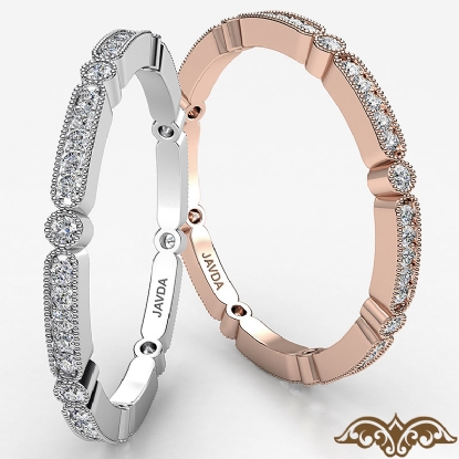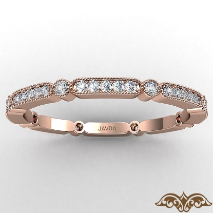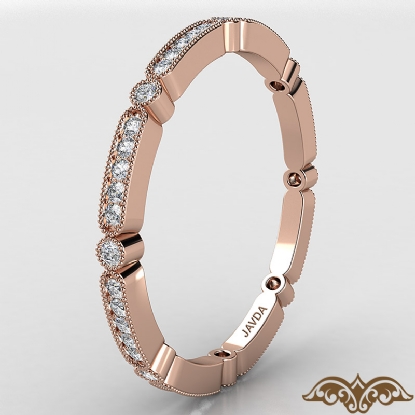 Simple and elegant milgrain round diamond eternity women's wedding band made in 14k Rose Gold. This vintage inspired wedding ring features round diamonds in a micro pave setting with delicate milgrain edges. This band perfectly matched with javda engagement ring, available in 14k & 18k white gold, yellow gold, rose gold and platinum 950.