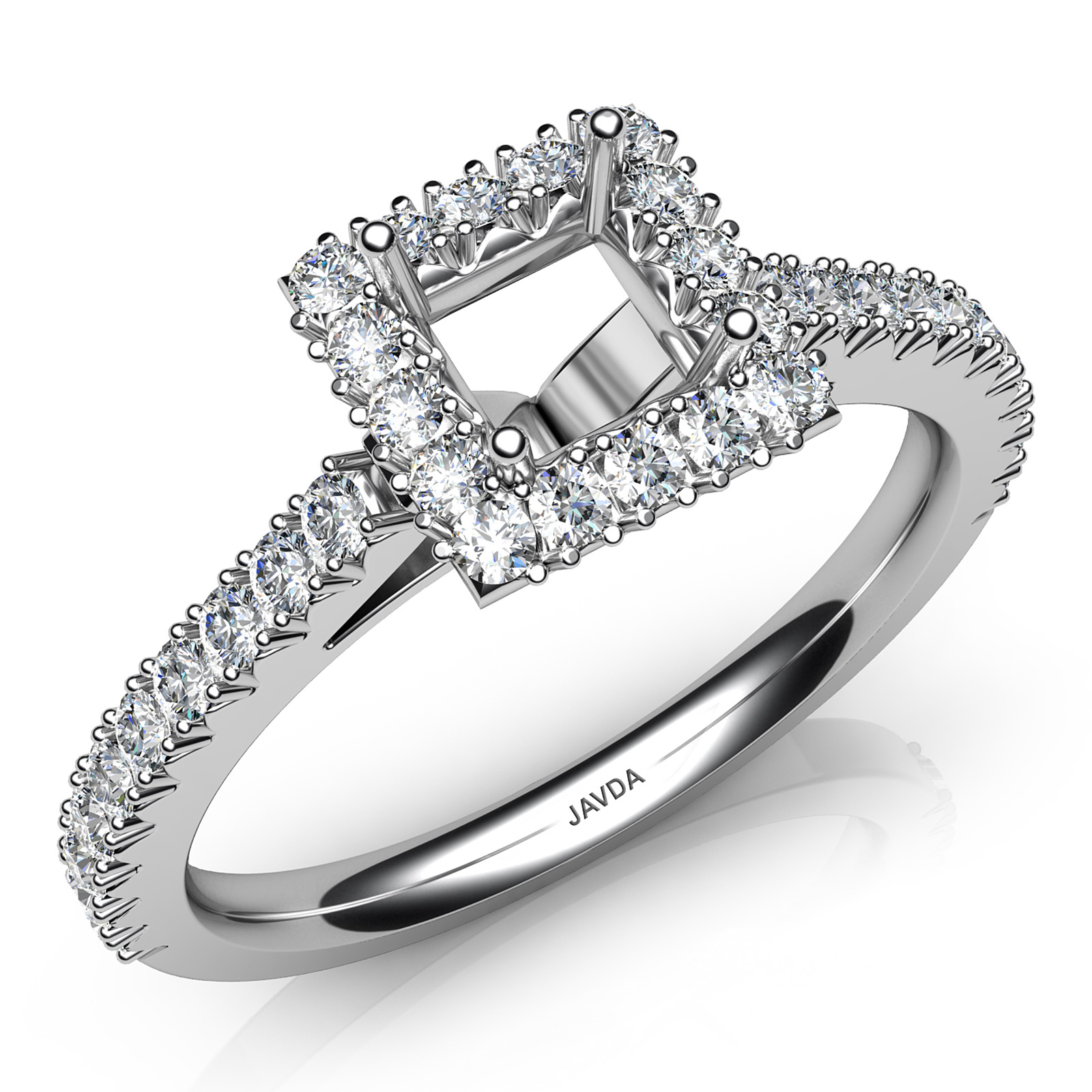 French Cut Pave Set Diamond Engagement Princess Semi Mount Ring 14k W Gold (1.35Ct. tw.)