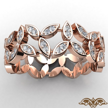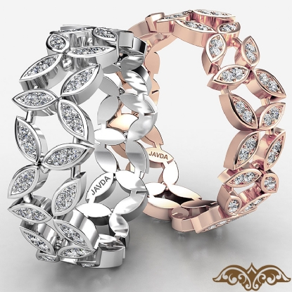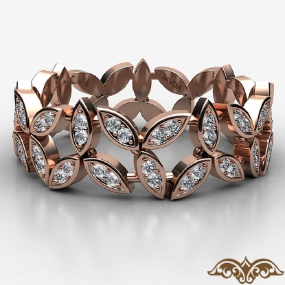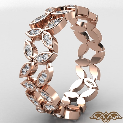 Vintage inspired leaf petal vine women's diamond eternity wedding band crafted in 18k Rose Gold. This statement piece features alternating round diamonds in a pave setting. Available in 14k & 18k white gold, yellow gold, rose gold and platinum 950. If you don't find your desired jewelry, please don't hesitate to contact our designer to make your custom jewelry design (0.3Ct. tw.)