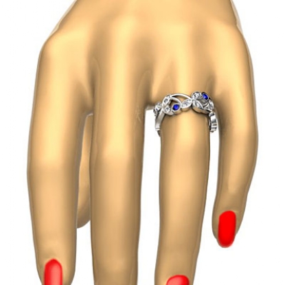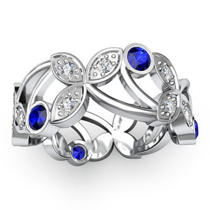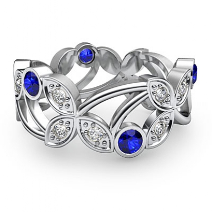 Diamond Round Sapphire Eternity Women's Wedding Ring Band 18k W Gold (0.39Ct. tw.)