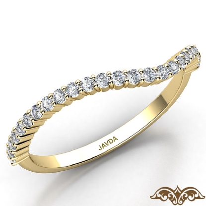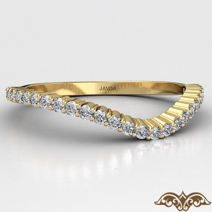 Simple and elegant round diamond women's curved wedding band handcrafted in 18k Gold Yellow. Features round diamonds in a prong setting. This simple anniversary band compliment any styles of diamond ring, available in 14k & 18k white gold, yellow gold, rose gold and platinum 950. If you don't find your desired jewelry, please don't hesitate to contact our designer to make your custom jewelry design (0.2Ct. tw.)
