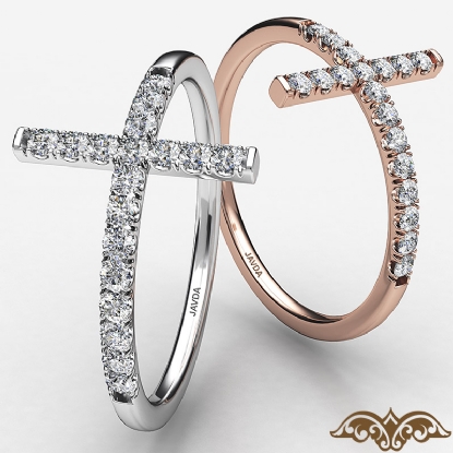 U Split Pave Cross Round Diamond Womens Wedding Band In 18k Rose Gold (0.15Ct. tw.)