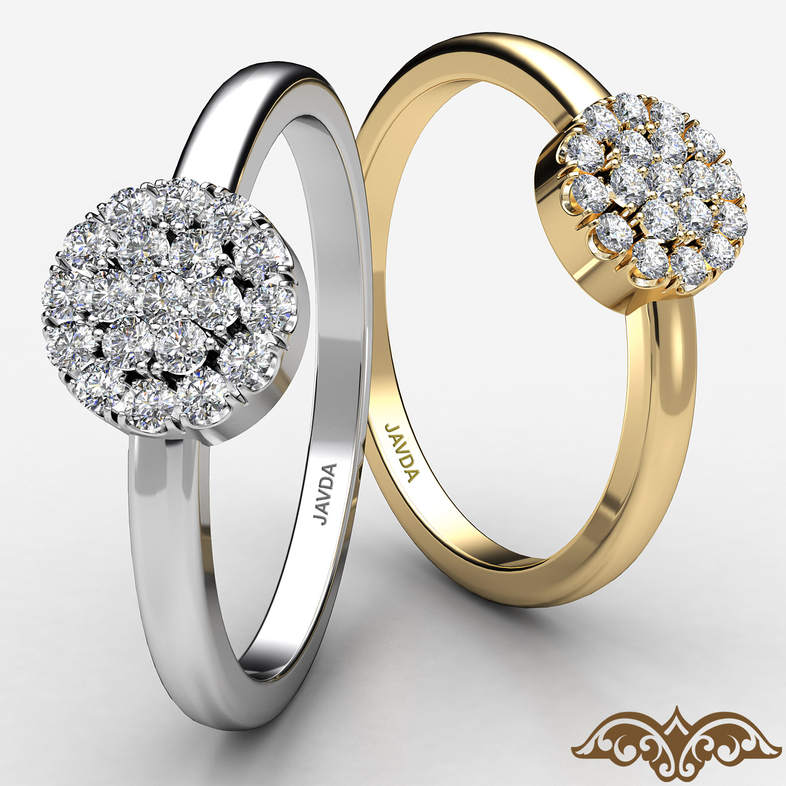 An exquisite women's round diamond cluster ring made in finest quality 18k Gold Yellow. This beautiful ring features round diamonds in a U cut split pave setting. Available in 14k & 18k white gold, yellow gold, rose gold and platinum 950. If you don't find your desired jewelry, please don't hesitate to contact our designer to make your custom jewelry design (0.15Ct. tw.)