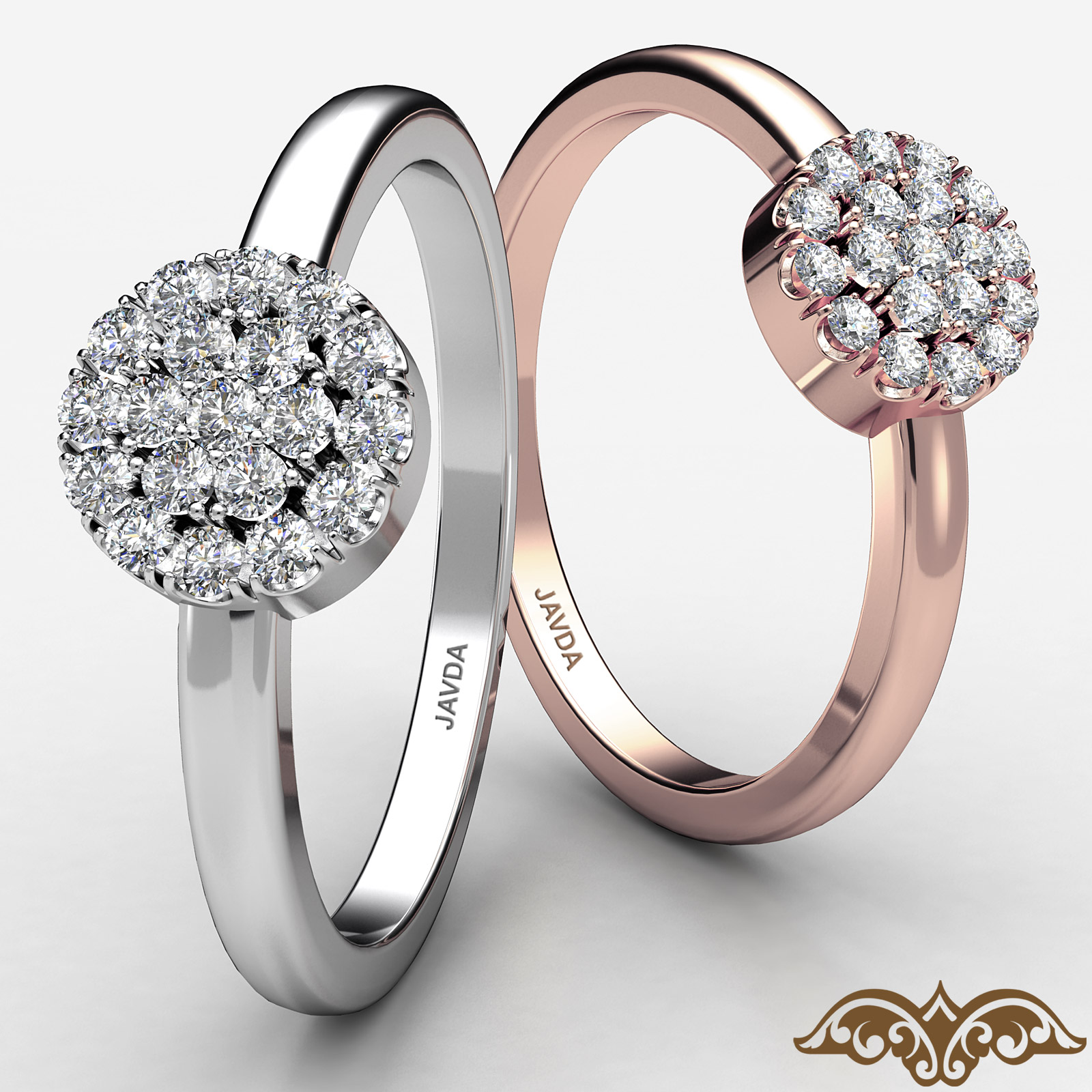 An exquisite women's round diamond cluster ring made in finest quality 18k Rose Gold. This beautiful ring features round diamonds in a U cut split pave setting. Available in 14k & 18k white gold, yellow gold, rose gold and platinum 950. If you don't find your desired jewelry, please don't hesitate to contact our designer to make your custom jewelry design (0.15Ct. tw.)