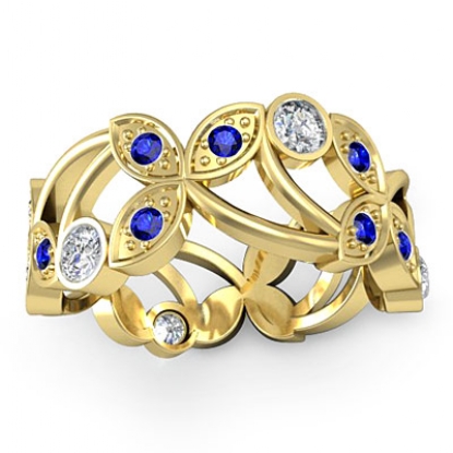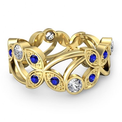 Diamond Women's Wedding Ring Round Sapphire Eternity Band 18k Gold (0.13Ct. tw.)