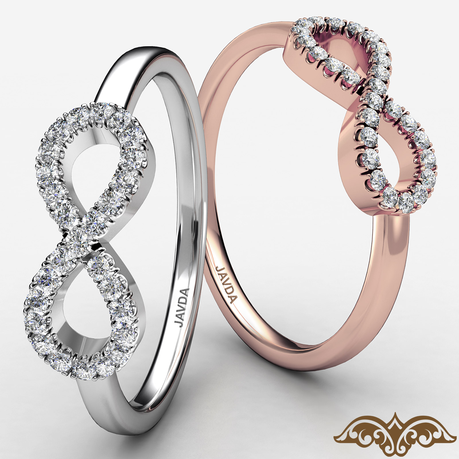 Show your love with this charming infinity round diamond women's fashion ring artfully crafted in 18k Rose Gold. Features round diamonds in a U cut split pave setting. This ring is a symbol of eternal love, available in 14k & 18k white gold, yellow gold, rose gold and platinum 950. If you don't find your desired jewelry, please don't hesitate to contact our designer to make your custom jewelry design (0.15Ct. tw.)