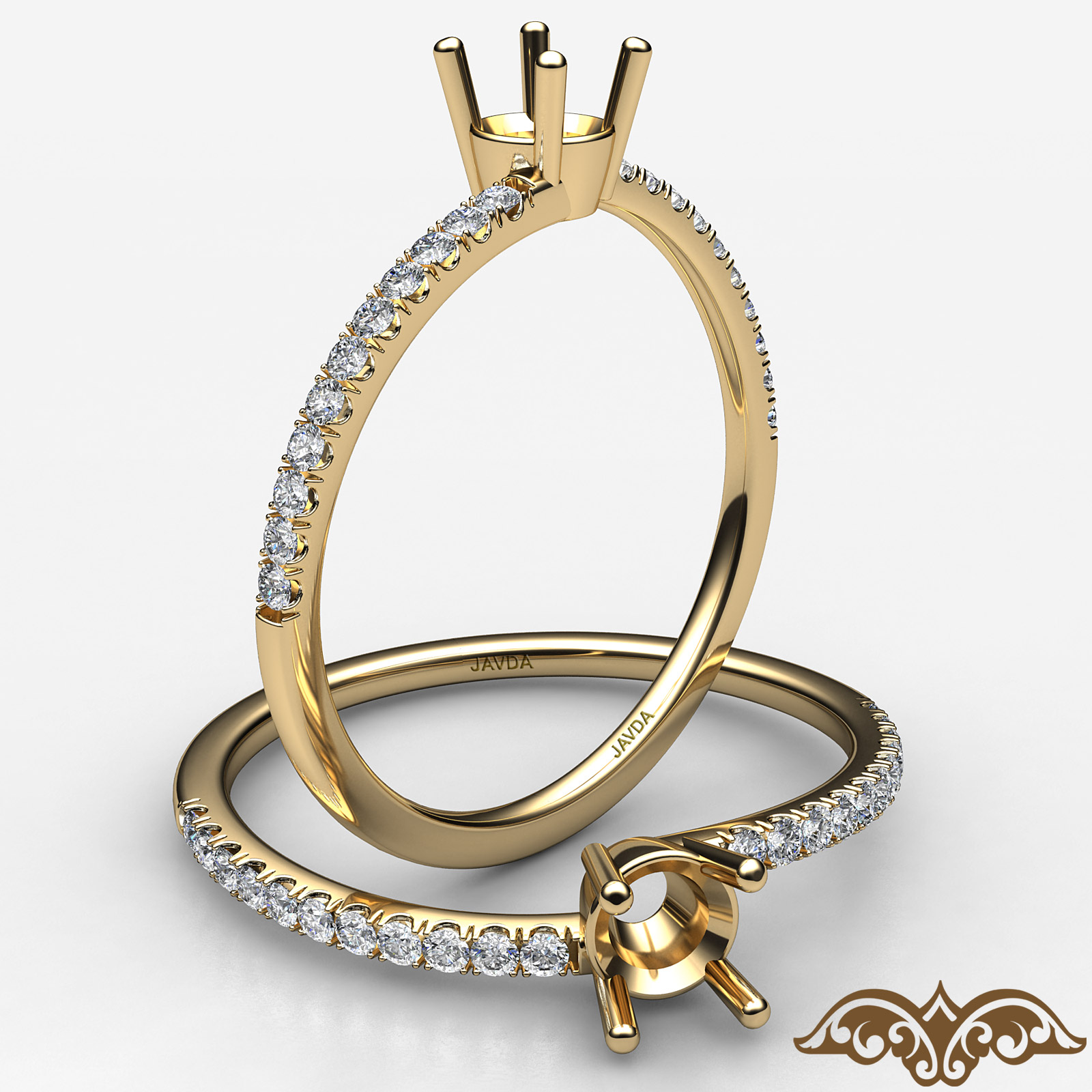 Stunning bypass round diamond women's fashion ring handmade in finest quality 14k Gold Yellow. Features round diamonds in a U cut split pave setting on shank meets the center round diamond in a prong setting. Available in 14k & 18k white gold, yellow gold, rose gold and platinum 950. If you don't find your desired jewelry, please don't hesitate to contact our designer to make your custom jewelry design (0.15Ct. tw.)