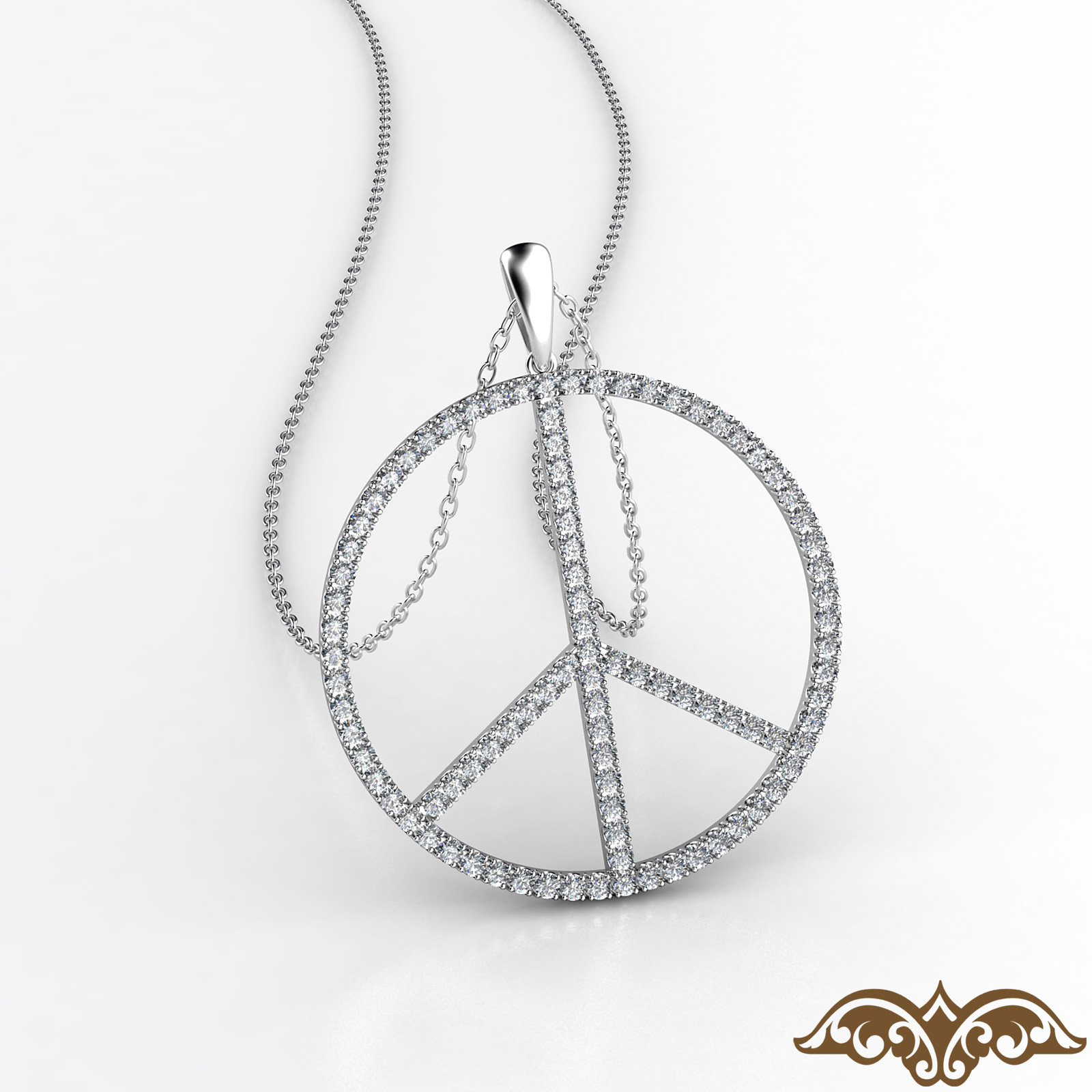 This women's peace symbol pendant necklace is beautifully crafted in quality 18k Gold White. Features round diamonds in a U cut split pave setting with 18 inch rolo chain that secures with a lobster clasp. This fashion pendant adding a touch of sparkle to any outfit, available in 14k & 18k white gold, yellow gold, rose gold and platinum 950. If you don't find your desired jewelry, please don't hesitate to contact our designer to make your custom jewelry design (0.5Ct. tw.)
