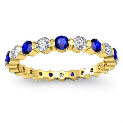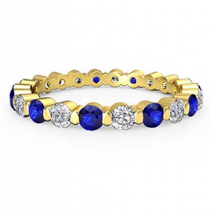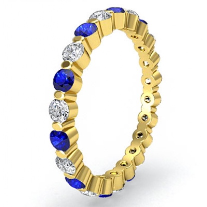 Women's Round Sapphire Diamond Eternity Wedding Ring 14k Gold Band (0.65Ct. tw.)