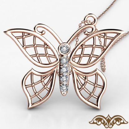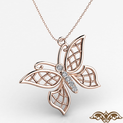 Delicate and beautiful women's butterfly charm diamond pendant necklace made in high quality 14k Rose Gold. This butterfly pendant features 5 round diamonds in a pave setting with polished finish filigree wings. This gorgeous piece is perfect to gift your loved one, available in 14k & 18k white gold, yellow gold, rose gold and platinum 950. If you don't find your desired jewelry, please don't hesitate to contact our designer to make your custom jewelry design (0.04Ct. tw.)