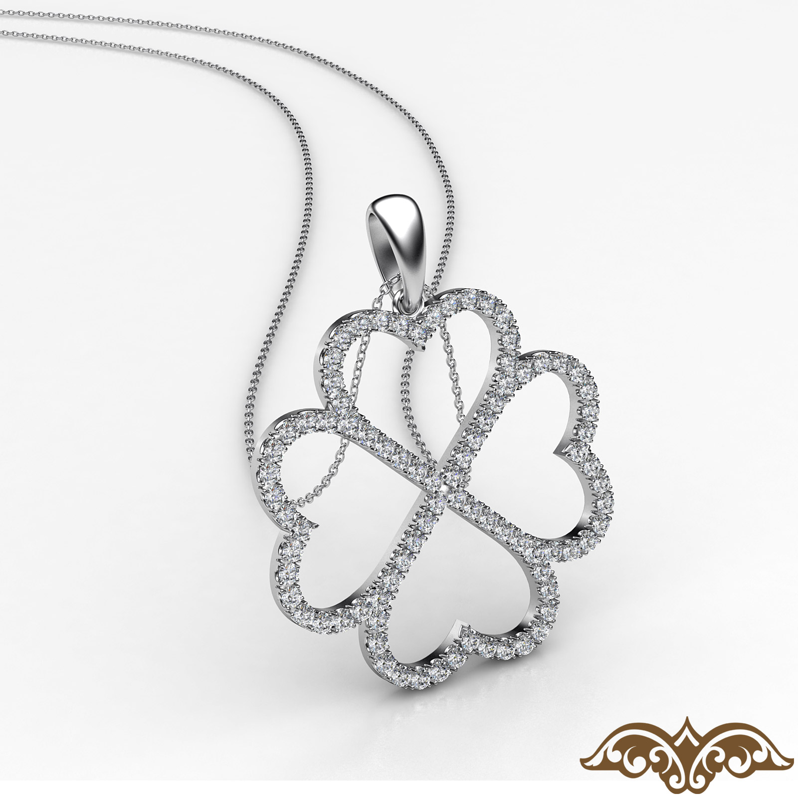A symbol of good luck, four leaf clover diamond pendant necklace for women's made in 18k Gold White. This shamrock pendant features natural round diamonds in a U cut pave setting with 18 inch rolo chain that secures with polished bail clasp. Great gift for everyone get it now, available in 14k & 18k white gold, yellow gold, rose gold and platinum 950. If you don't find your desired jewelry, please don't hesitate to contact our designer to make your custom jewelry design (0.6Ct. tw.)