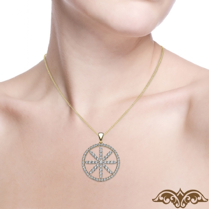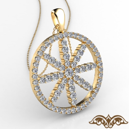Stunning circle flower women's diamond pendant necklace handmade in high quality 18k Gold Yellow. This beautiful pendant features round diamonds in a U cut pave setting and