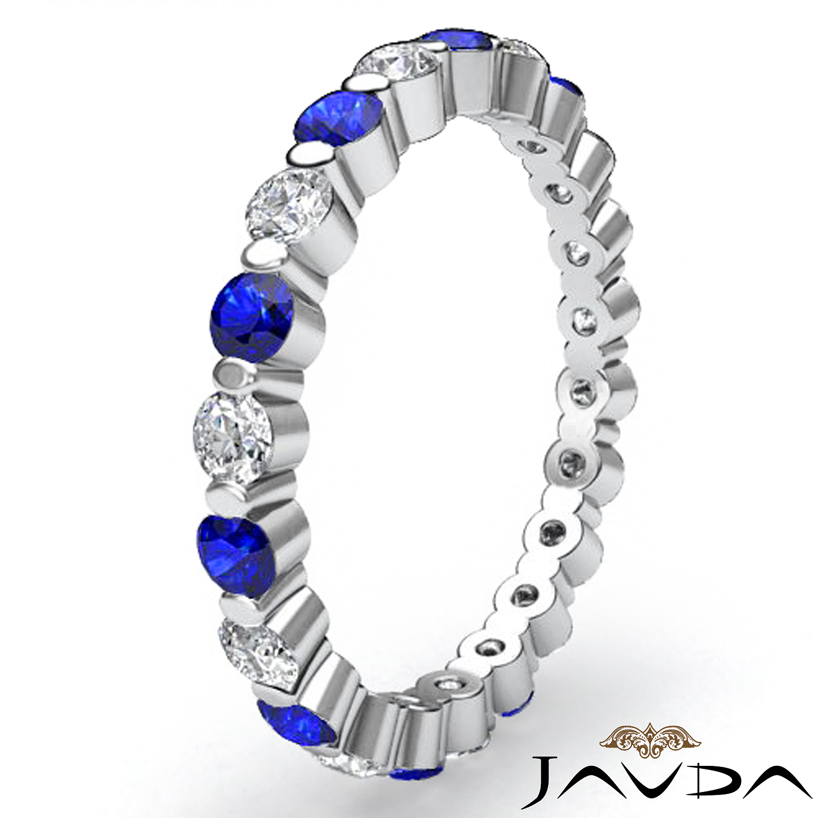 Women's Round Sapphire Diamond Eternity Wedding Ring Platinum Band (0.65Ct. tw.)