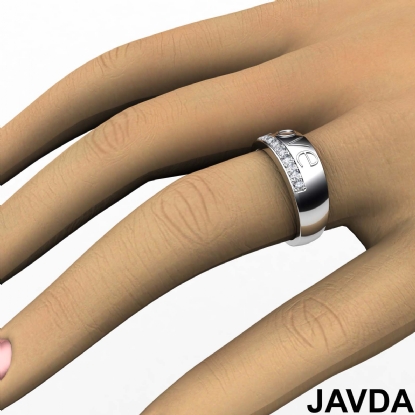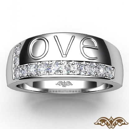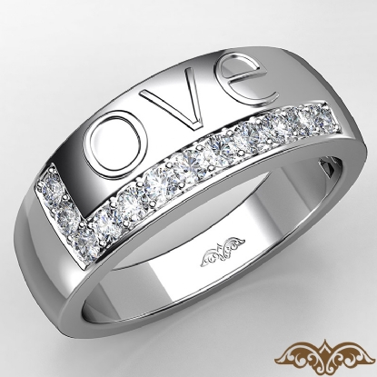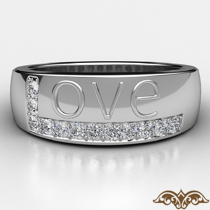 Our exclusively handmade Love script women's diamond half wedding band crafted in finest quality 18k Gold White. This beautiful word ring features round diamonds in a micro pave setting. Give her this ring as an everyday reminder of your love, available in 14k & 18k white gold, yellow gold, rose gold and platinum 950. If you don't find your desired jewelry, please don't hesitate to contact our designer to make your custom jewelry design. (0.3Ct. tw.)