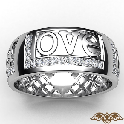 This personalized domed women's love eternity diamond wedding band handcrafted in 18k Gold White. Features round diamonds in a micro pave setting with beautiful inside filigree. This promise ring available in 14k & 18k white gold, yellow gold, rose gold and platinum 950. If you don't find your desired jewelry, please don't hesitate to contact our designer to make your custom jewelry design (0.35Ct. tw.)