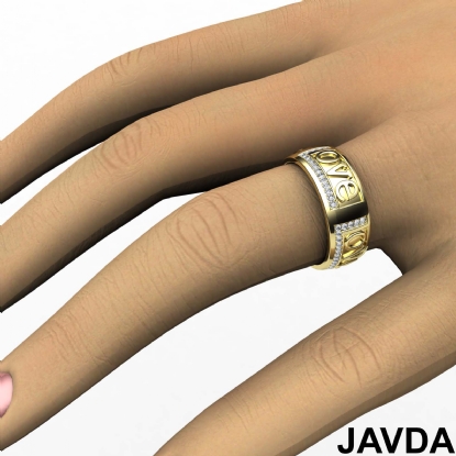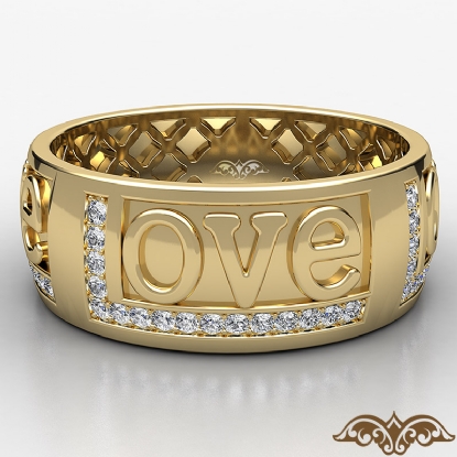 This personalized domed women's love eternity diamond wedding band handcrafted in 18k Gold Yellow. Features round diamonds in a micro pave setting with beautiful inside filigree. This promise ring available in 14k & 18k white gold, yellow gold, rose gold and platinum 950. If you don't find your desired jewelry, please don't hesitate to contact our designer to make your custom jewelry design (0.35Ct. tw.)