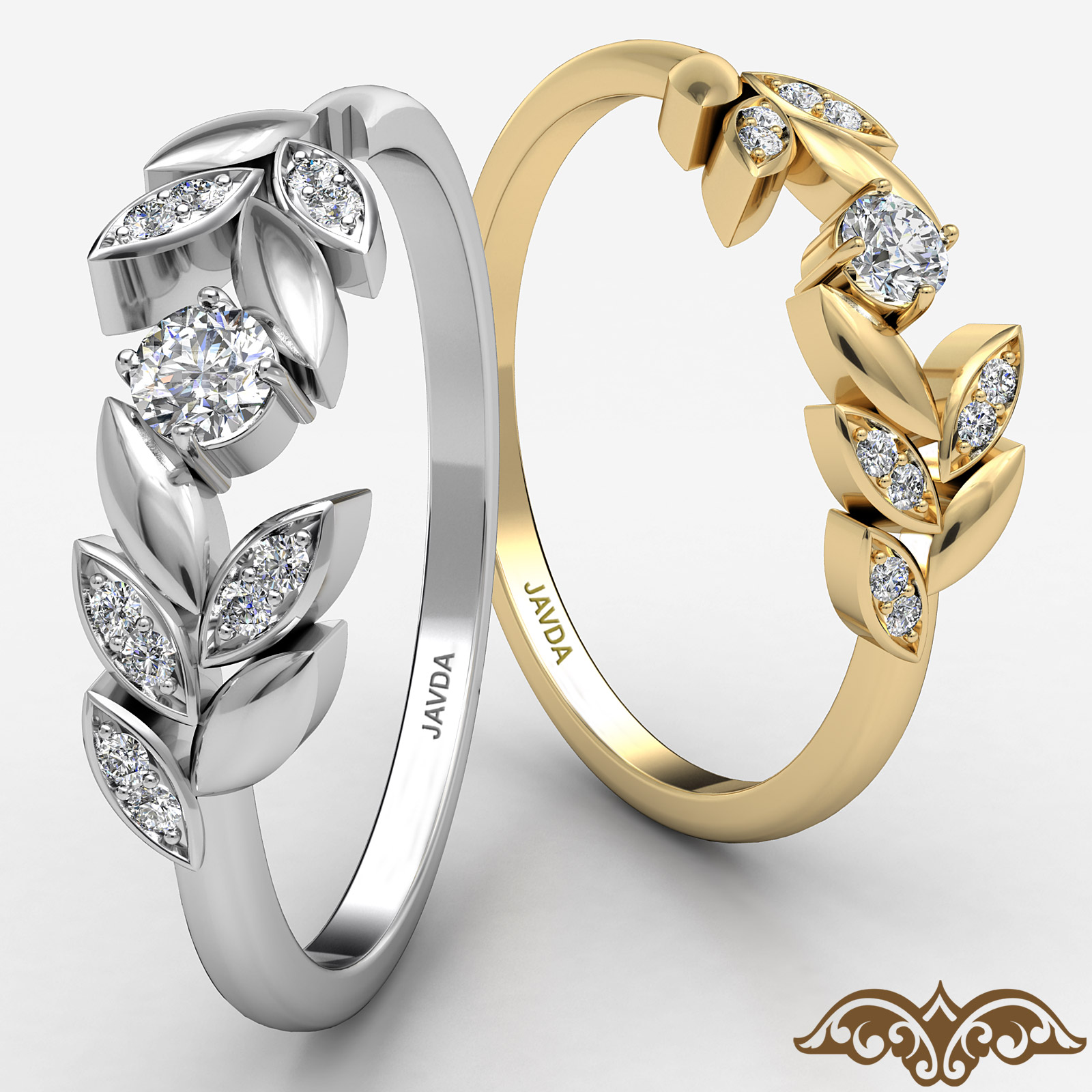 This delicate leaf petal design women's fashion diamond ring handmade in 14k Gold Yellow. Features round diamonds in a micro pave setting on leaf design and centre diamond in a prong setting. The beauty of nature, this promise ring available in 14k & 18k white gold, yellow gold, rose gold and platinum 950. If you don't find your desired jewelry, please don't hesitate to contact our designer to make your custom jewelry design (0.1Ct. tw.)