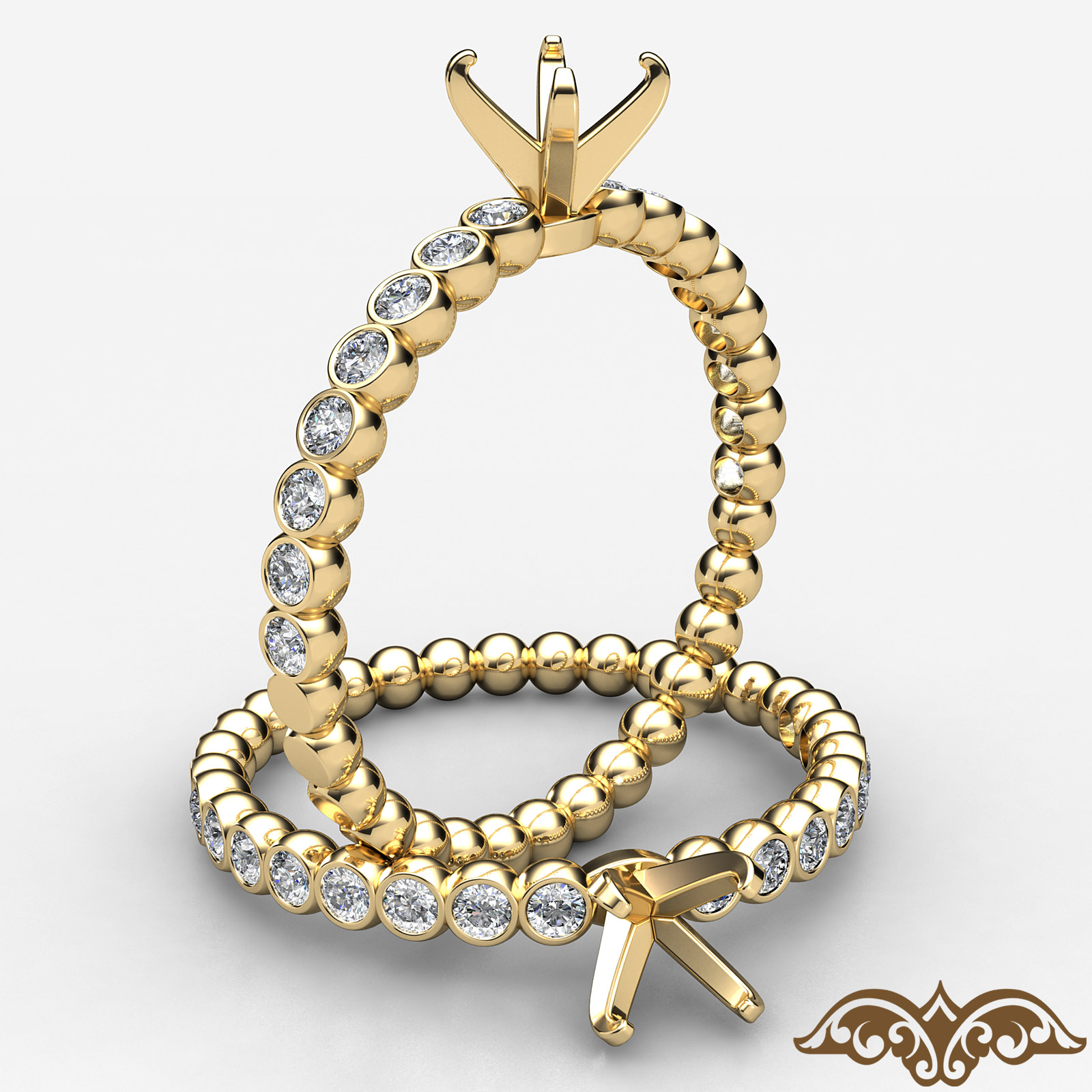 Add a unique look to any outfit with this thin bubble women's diamond engagement semi mount ring crafted in 14k Gold Yellow. Features round diamonds in a bezel setting. This ring is the perfect for everyday accessory, available in 14k & 18k white gold, yellow gold, rose gold and platinum 950. If you don't find your desired jewelry, please don't hesitate to contact our designer to make your custom jewelry design (0.15Ct. tw.)