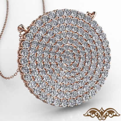 Modern design circle cluster diamond women's pendant necklace made in 14k Rose Gold. This elegant pendant features round diamonds in a prong setting with 18 inch rolo chain that secures with polished clasp. Available in 14k & 18k white gold, yellow gold, rose gold and platinum 950. If you don't find your desired jewelry, please don't hesitate to contact our designer to make your custom jewelry design. (2.35Ct. tw.)