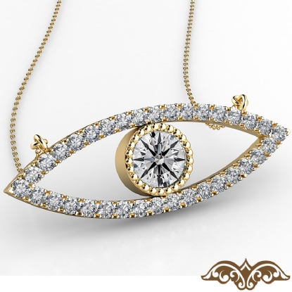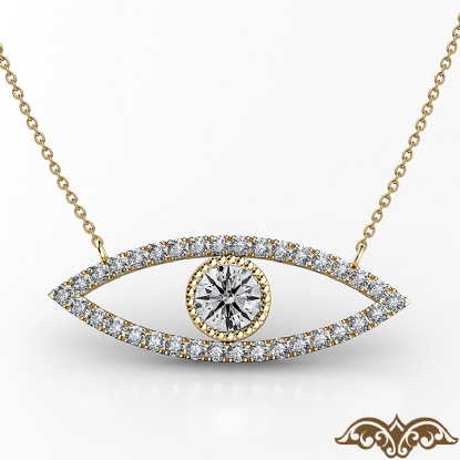 This good luck charm evil eye women's diamond pendant necklace handmade in 14k Gold Yellow. Features milgrain detailing bezel set round diamond and