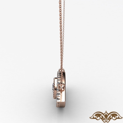 This good luck charm evil eye women's diamond pendant necklace handmade in 14k Rose Gold. Features milgrain detailing bezel set round diamond and