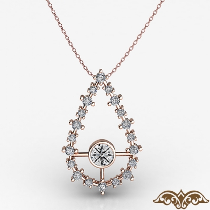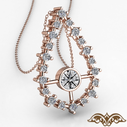 The bold and precious diamond tear drop women's pendant necklace handcrafted in 14k Rose Gold. This unique design pendant features round diamond in a prong setting and