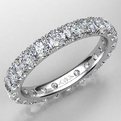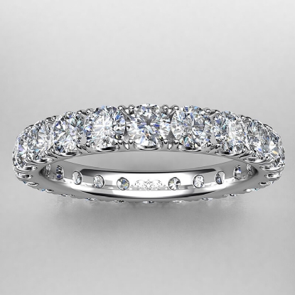 Shop this beautiful french u cut pave round diamond eternity womens wedding band handcrafted in 18k Gold White. This wedding ring features round diamonds in a french u cut pave setting. This eternity band is perfect as a wedding ring or anniversary ring, available in 14k & 18k white gold, yellow gold, rose gold and platinum 950. If you don't find your desired jewelry, please don't hesitate to contact our designer to make your custom jewelry design (2.25Ct. tw.)