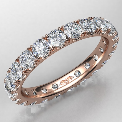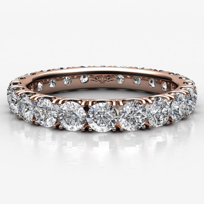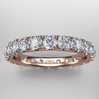 Shop this beautiful french u cut pave round diamond eternity womens wedding band handcrafted in 14k Rose Gold. This wedding ring features round diamonds in a french u cut pave setting. This eternity band is perfect as a wedding ring or anniversary ring, available in 14k & 18k white gold, yellow gold, rose gold and platinum 950. If you don't find your desired jewelry, please don't hesitate to contact our designer to make your custom jewelry design (2.25Ct. tw.)