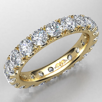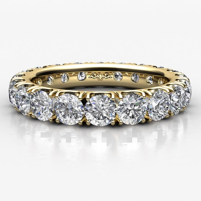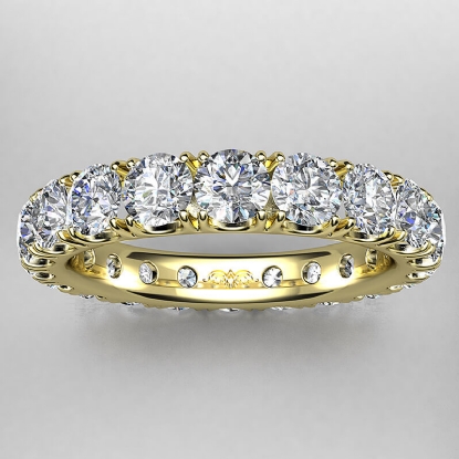 A timeless and elegant round diamond eternity women's wedding anniversary band made in 14k Gold Yellow. This gorgeous ring showcases sparkling natural round diamonds in a french u cut pave setting. Available in 14k & 18k white gold, yellow gold, rose gold and platinum 950. If you don't find your desired jewelry, please don't hesitate to contact our designer to make your custom jewelry design (2.95Ct. tw.)