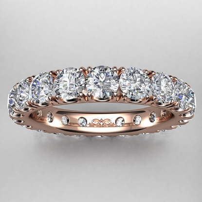 A timeless and elegant round diamond eternity women's wedding anniversary band made in 14k Rose Gold. This gorgeous ring showcases sparkling natural round diamonds in a french u cut pave setting. Available in 14k & 18k white gold, yellow gold, rose gold and platinum 950. If you don't find your desired jewelry, please don't hesitate to contact our designer to make your custom jewelry design (2.95Ct. tw.)