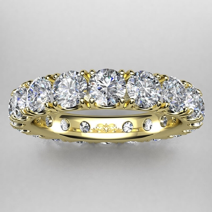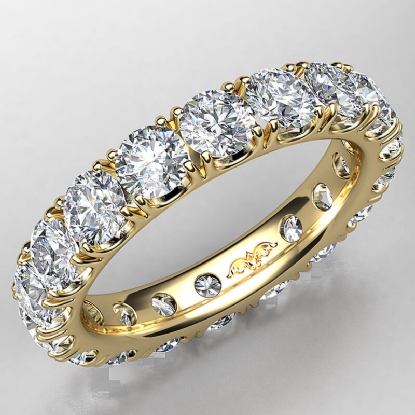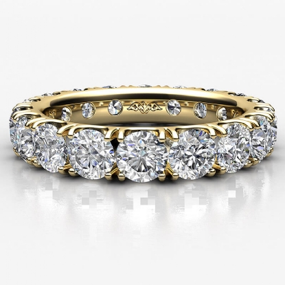A great symbol of everlasting love round diamond eternity women's anniversary wedding band crafted in 18k Gold Yellow. This ring showcases brilliant round diamonds in a french u cut pave setting. She will definitely get impressed with this beautiful ring, available in 14k & 18k white gold, yellow gold, rose gold and platinum 950. If you don't find your desired jewelry, please don't hesitate to contact our designer to make your custom jewelry design (3.4Ct. tw.)