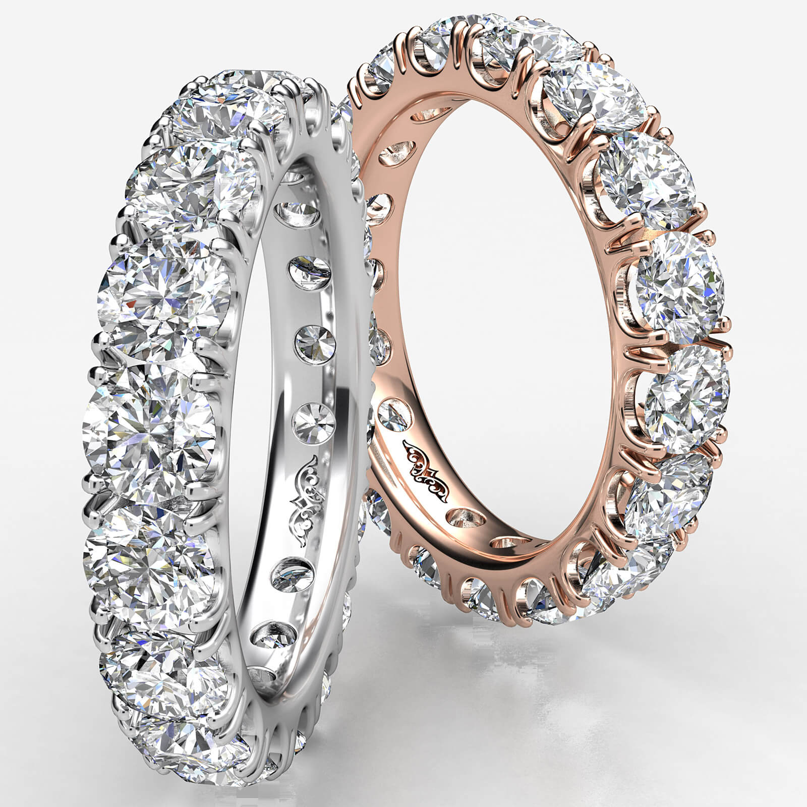 A great symbol of everlasting love round diamond eternity women's anniversary wedding band crafted in 14k Rose Gold. This ring showcases brilliant round diamonds in a french u cut pave setting. She will definitely get impressed with this beautiful ring, available in 14k & 18k white gold, yellow gold, rose gold and platinum 950. If you don't find your desired jewelry, please don't hesitate to contact our designer to make your custom jewelry design (3.4Ct. tw.)