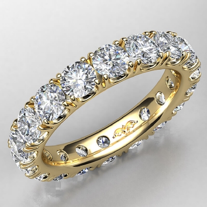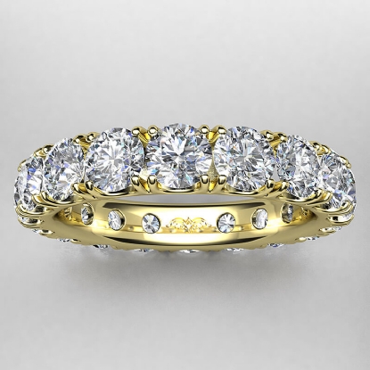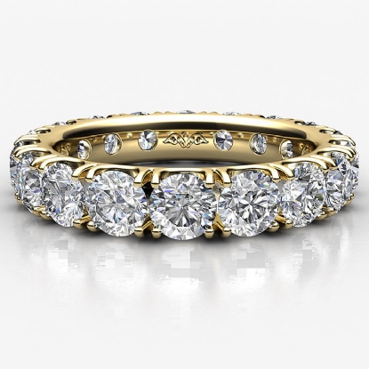 This elegant and classic round diamond eternity women's wedding band handcrafted in high quality 14k Gold Yellow. Features brilliant round diamonds in a french u cut pave setting. This classy ring style is perfect for any occasion, available in 14k & 18k white gold, yellow gold, rose gold and platinum 950. If you don't find your desired jewelry, please don't hesitate to contact our designer to make your custom jewelry design (4.1Ct. tw.)
