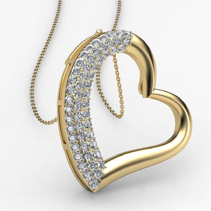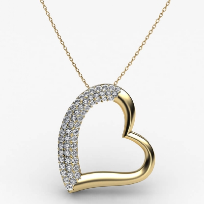 This charming 3 row round diamond tilted heart pendant necklace made in high quality 14k Gold Yellow. This pendant features 3 row round diamonds in a micro pave setting, hanged on 18 inch rolo chain. Wear this lovely pendant as a symbol of your love, available in 14k & 18k white gold, yellow gold, rose gold and platinum 950. If you don't find your desired jewelry, please don't hesitate to contact our designer to make your custom jewelry design (0.3Ct. tw.)