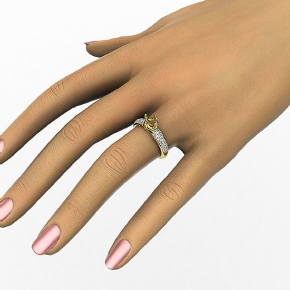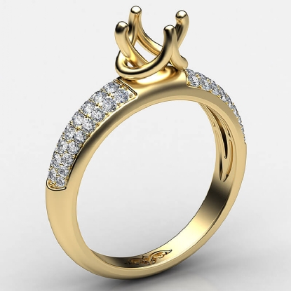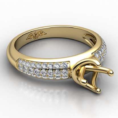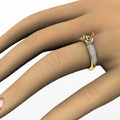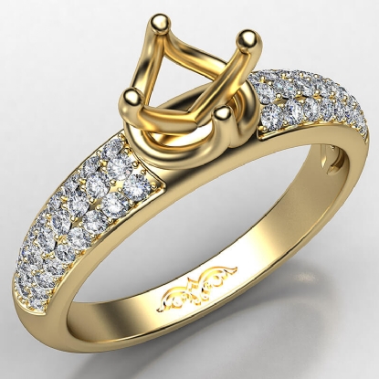 Designer three row round diamond semi mount engagement ring handmade in 18k Gold Yellow. This engagement ring setting showcases round diamonds in a micro pave setting on shank. The most romantic gift you can give to your women, available in 14k & 18k white gold, yellow gold, rose gold and platinum 950. If you don't find your desired jewelry, please don't hesitate to contact our designer to make your custom jewelry design (0.3Ct. tw.)
