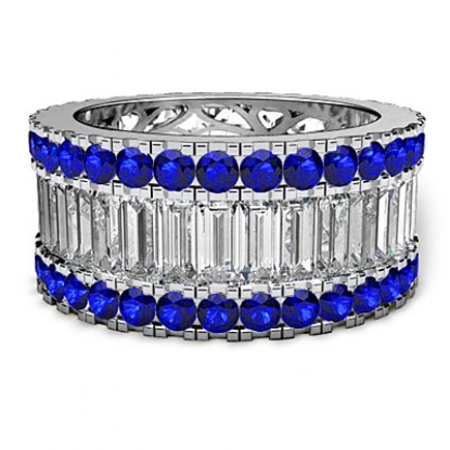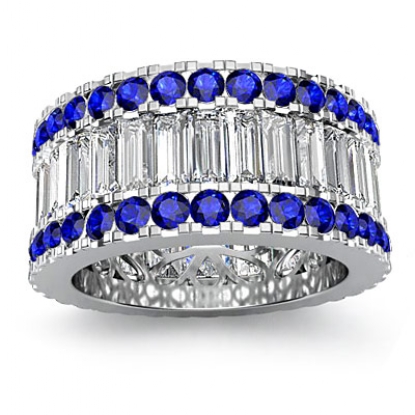 Baguette Round Sapphire Diamond Eternity Band 18k W Gold Wedding Ring (3.78Ct. tw.)