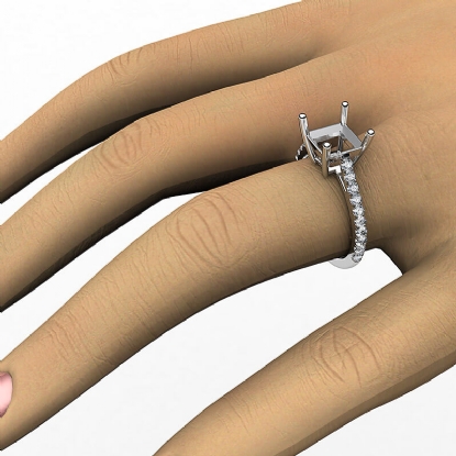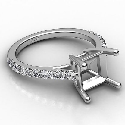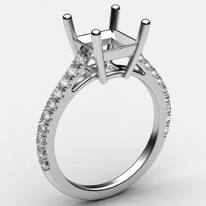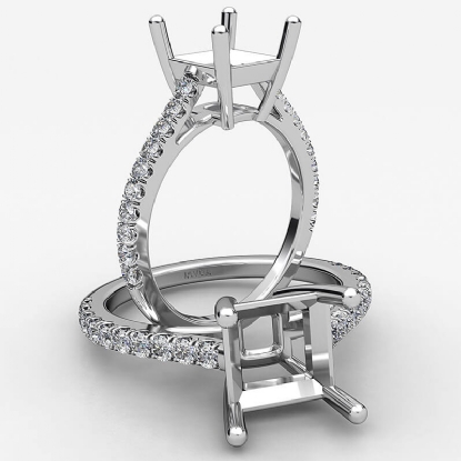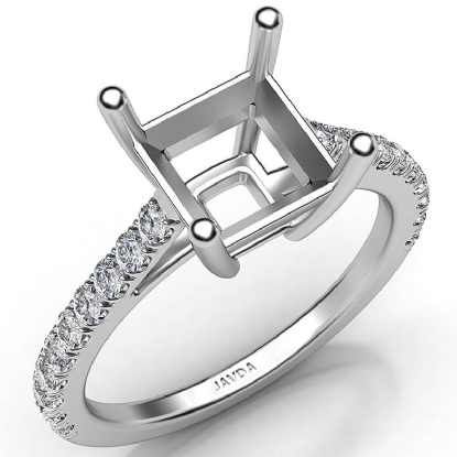 French U Pave Princess Diamond Semi Mount Engagement Ring 18k W Gold (0.31Ct. tw.)